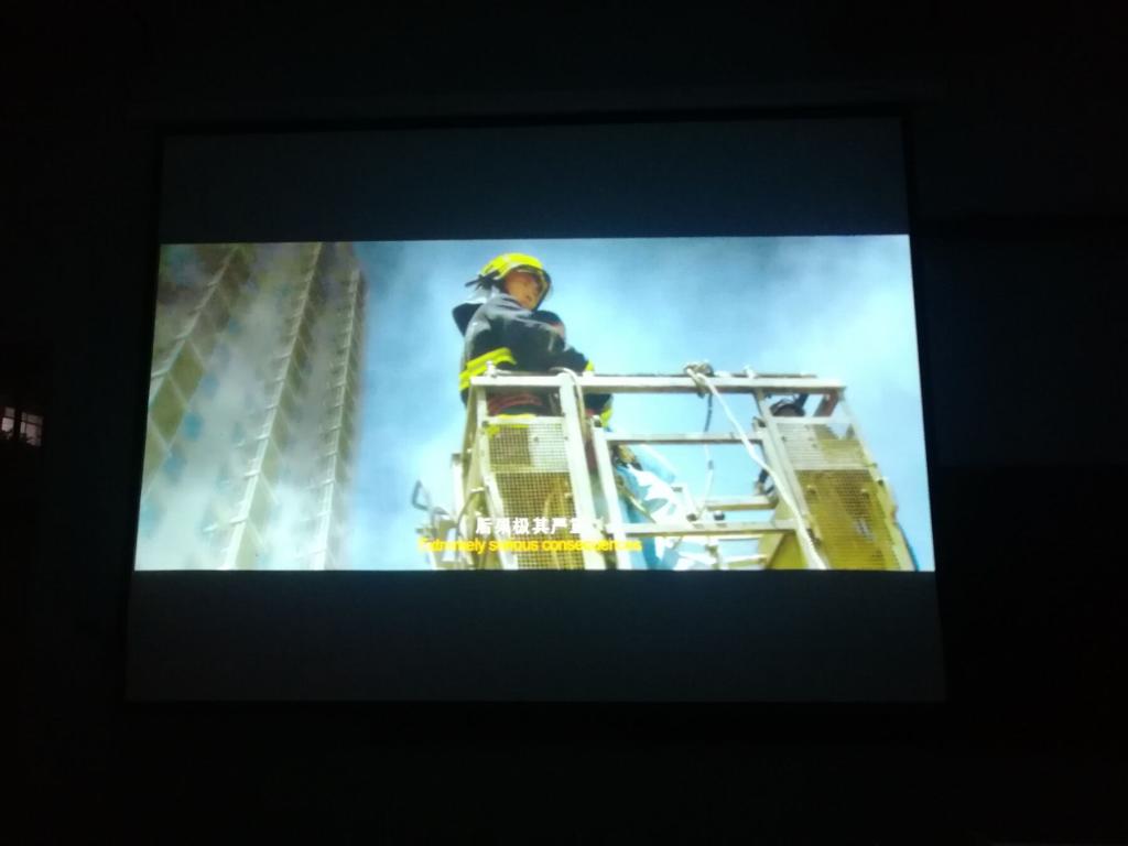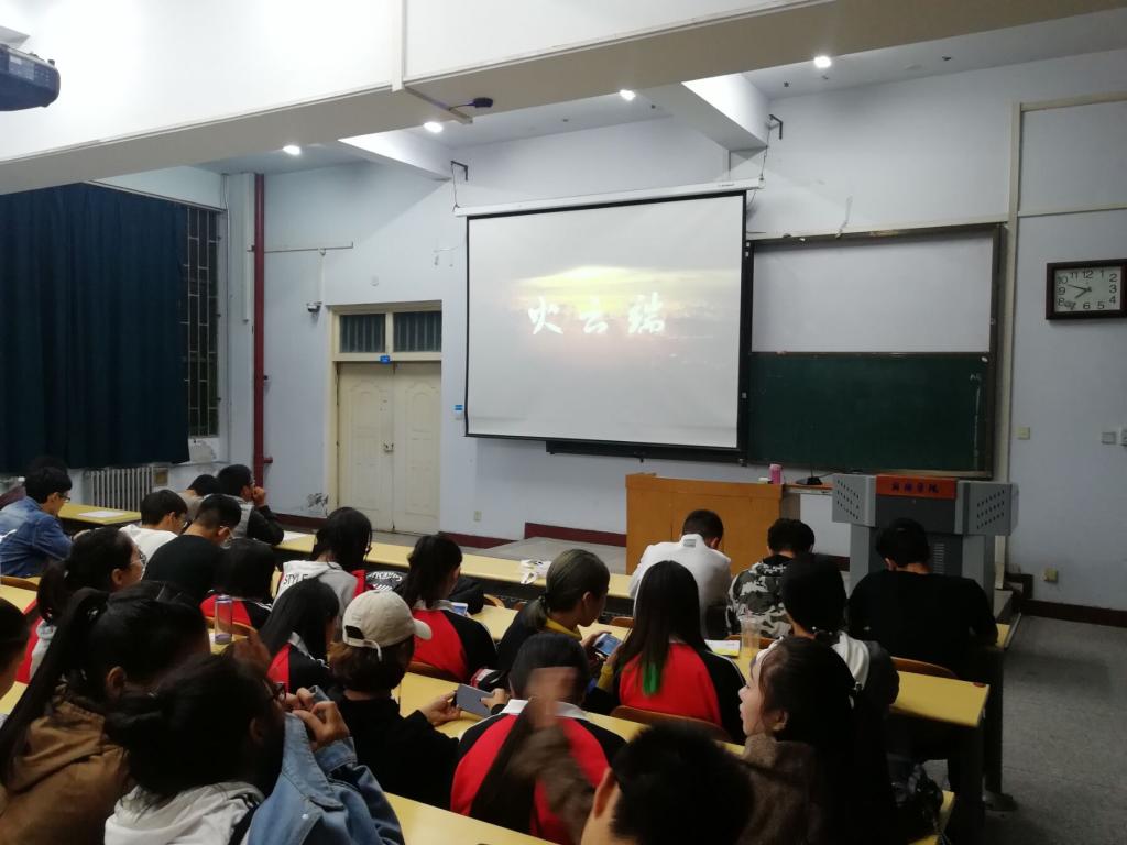 2018级辅导员冯毛弟老师首先对新入校的2018级新生进行欢迎,然后对大家介绍了消防安全的重要性,并为大家普及相应的消防安全知识。对大家指出寝室用电安全及一定的防护措施。之后,先播放了关于消防安全防护的短视频,教给大家遇到火灾应如何防护,如何应对。接着就开始播放电影《火云端》。