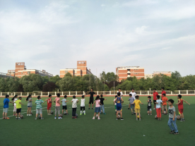 此次教学内容分为球性练习、颠球、脚内侧传球三个内容,教学对象分三个等级:小学、初中、高中。初中和高中组主要学习足球技能。小学组主要以结合球的游戏为主。首先要求理解和掌握脚内侧传球的动作要领及要求。接着巩固提高运球、脚内侧传球、对球的控制和支配能力,发展灵敏、速度、协调等身体素质。最后培养员工勇敢、机智、果断、胜不骄、败不馁的优良品质和团结一致、密切配合的集体主义精神。